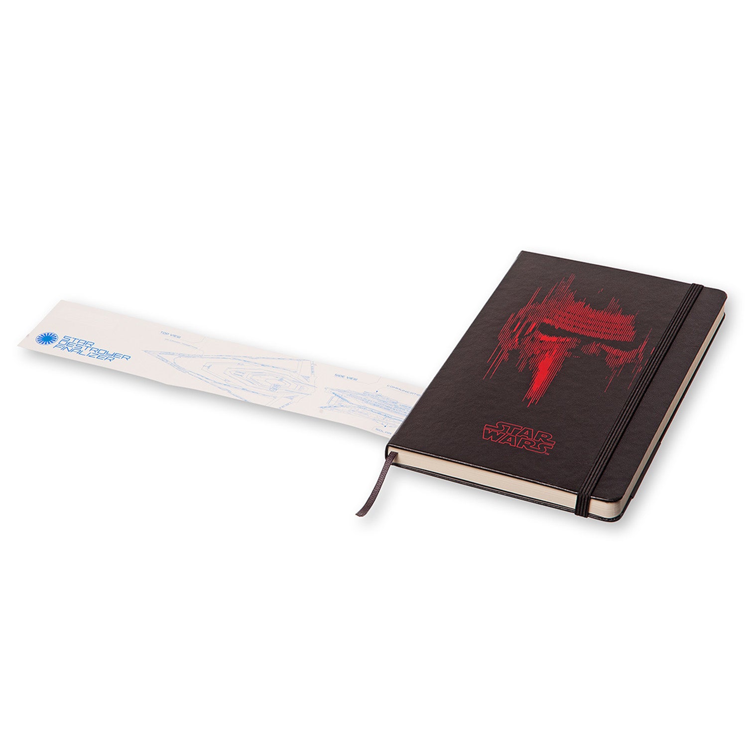 Moleskine celebrates the release of Star Wars VII: The Force Awakens with this limited edition notebook featuring a spectrograph concept of the film's lead villain! This large notebook is 5" x 8-1/4" with 240 pages, featuring Moleskine's classic rounded corners, ribbon bookmark and elastic closure. Decorated with a color cover, Star Wars-themed artwork throughout and dedicated inserts, this notebook is a must-have for all those who have been seduced by the Dark Side of the Force!
