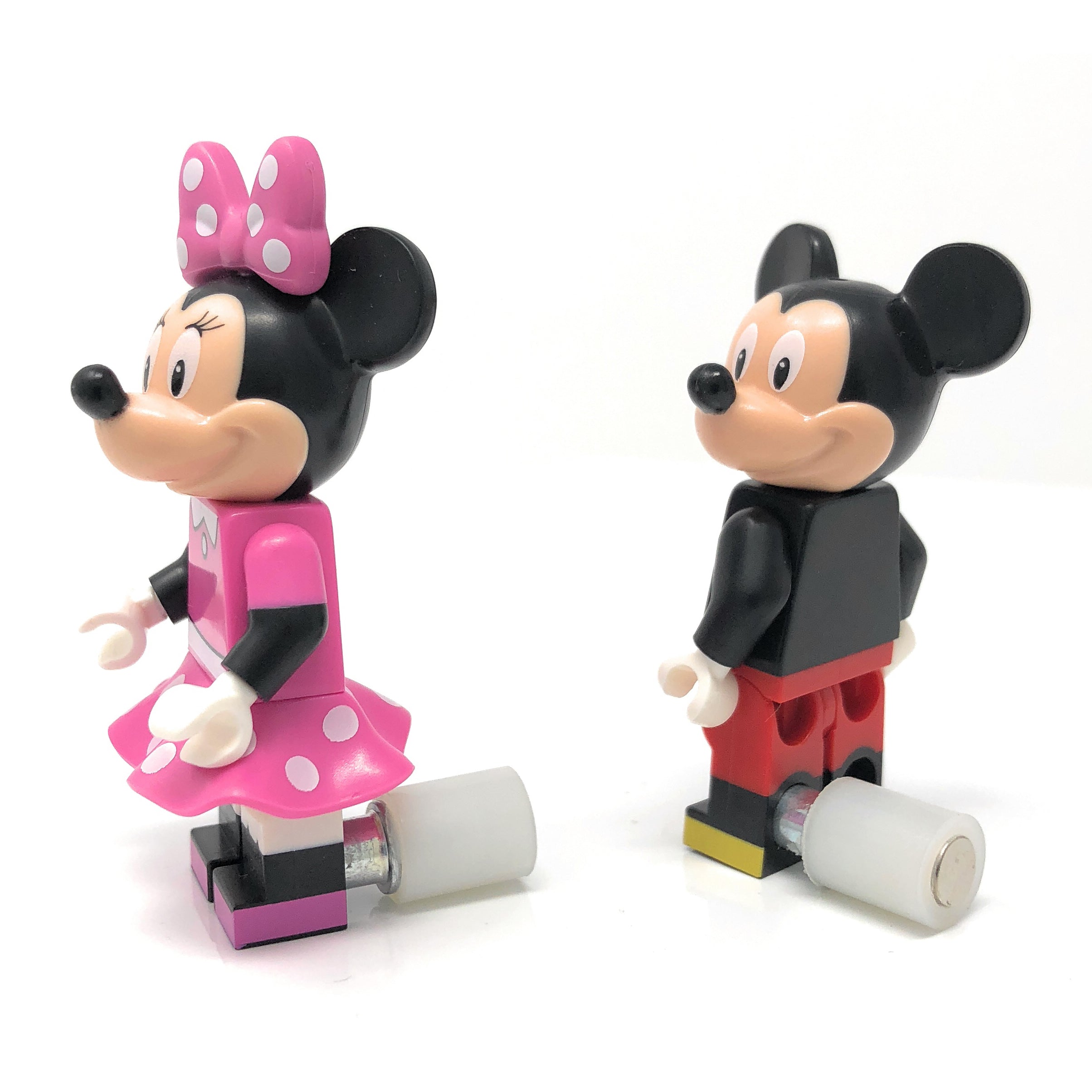 The magnet pin fits perfectly on the leg holes of each Lego® Minifigure.